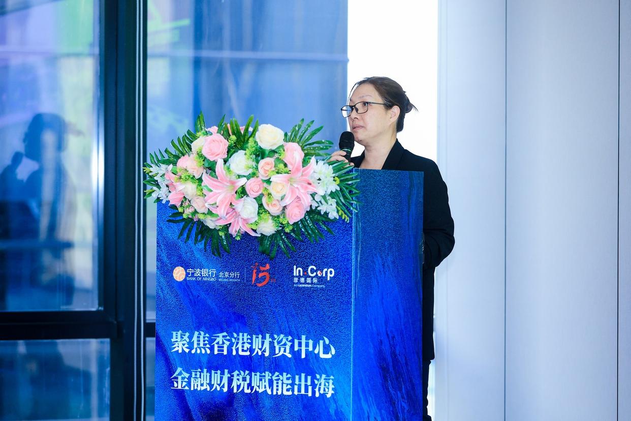 主办方彦德国际香港公司总经理刘艳琼女士和宁波银行北京分行副行长朱艳宇先生先后上台致辞。刘艳琼女士对各位嘉宾的到来热烈欢迎,期待通过此次活动分享,为与会企业全球化布局提供价值。朱艳宇先生介绍了宁波银行的“专业化、数字化、平台化、国际化”的海外服务体系,表示将用一站式平台护航企业出海。