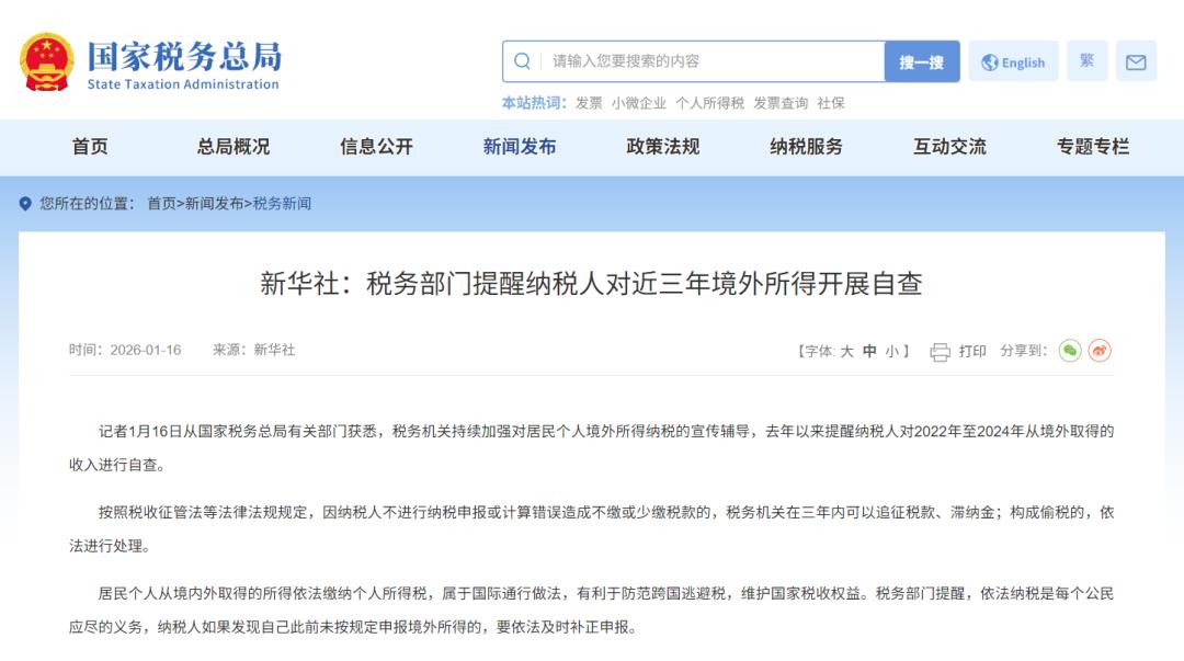 2025年多地税务部门通过税收大数据筛查,查处多起境外收入未申报案例:上海陈某补缴税款及滞纳金18.48万元、深圳周某补缴336.2万元、山东张某补缴126.38万元、湖北孙某某补缴141.3万元等。随着大数据征管的全面升级,未申报或漏报的跨境收入已无处藏匿。