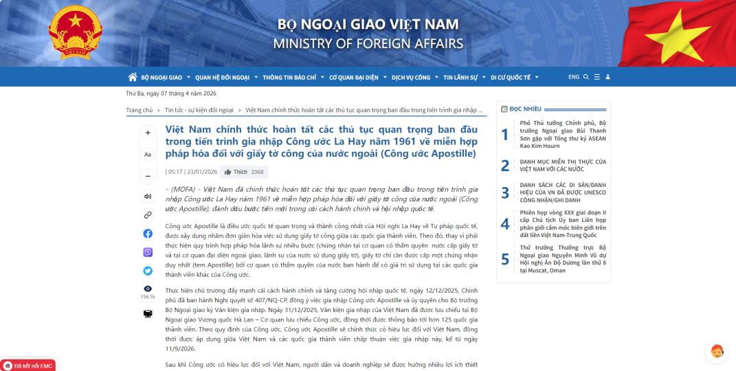 3. 成员国核查:核实发布国是否为缔约方,以及是否对越南加入表示异议;非缔约方文件仍需按传统领事认证办理。