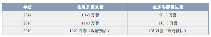近年来,印尼房地产业的发展也被广泛看好。房地产公司销量增长背后的动力是日益增长的城市人口对刚需住房的需求。2017—2019年印尼住房供需数据见下图。